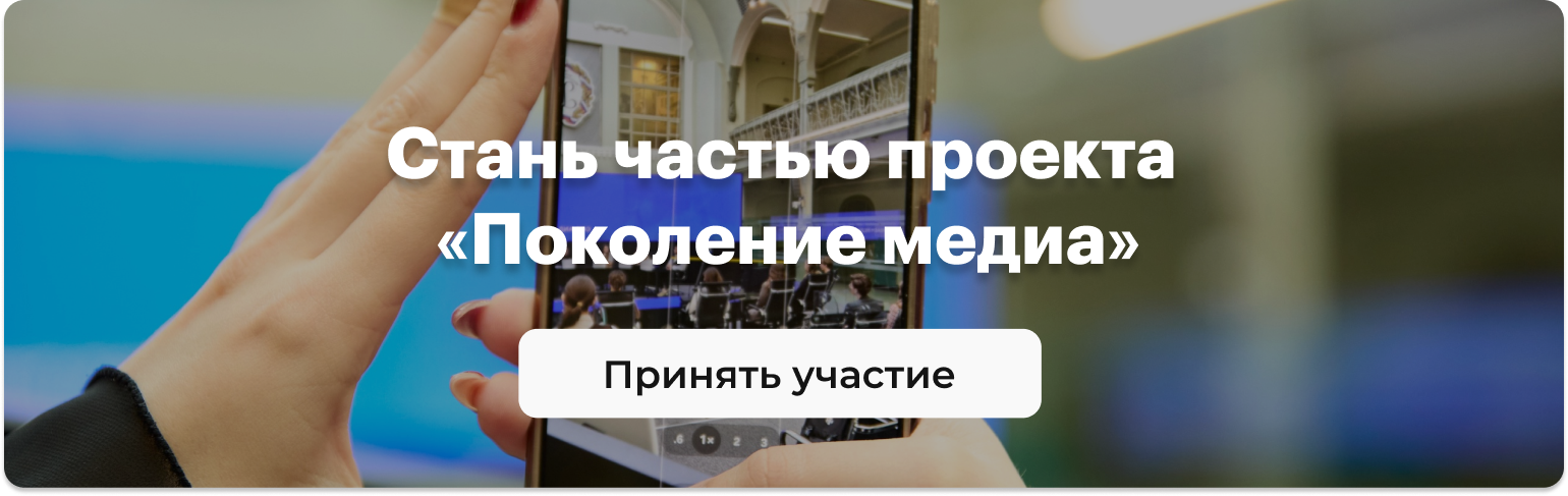 Участие в Проекте «Поколение медиа» могут принять студенты бакалавриата, специалитета, магистратуры всех форм обучения, являющиеся гражданами Российской Федерации или находящиеся в процессе получения гражданства